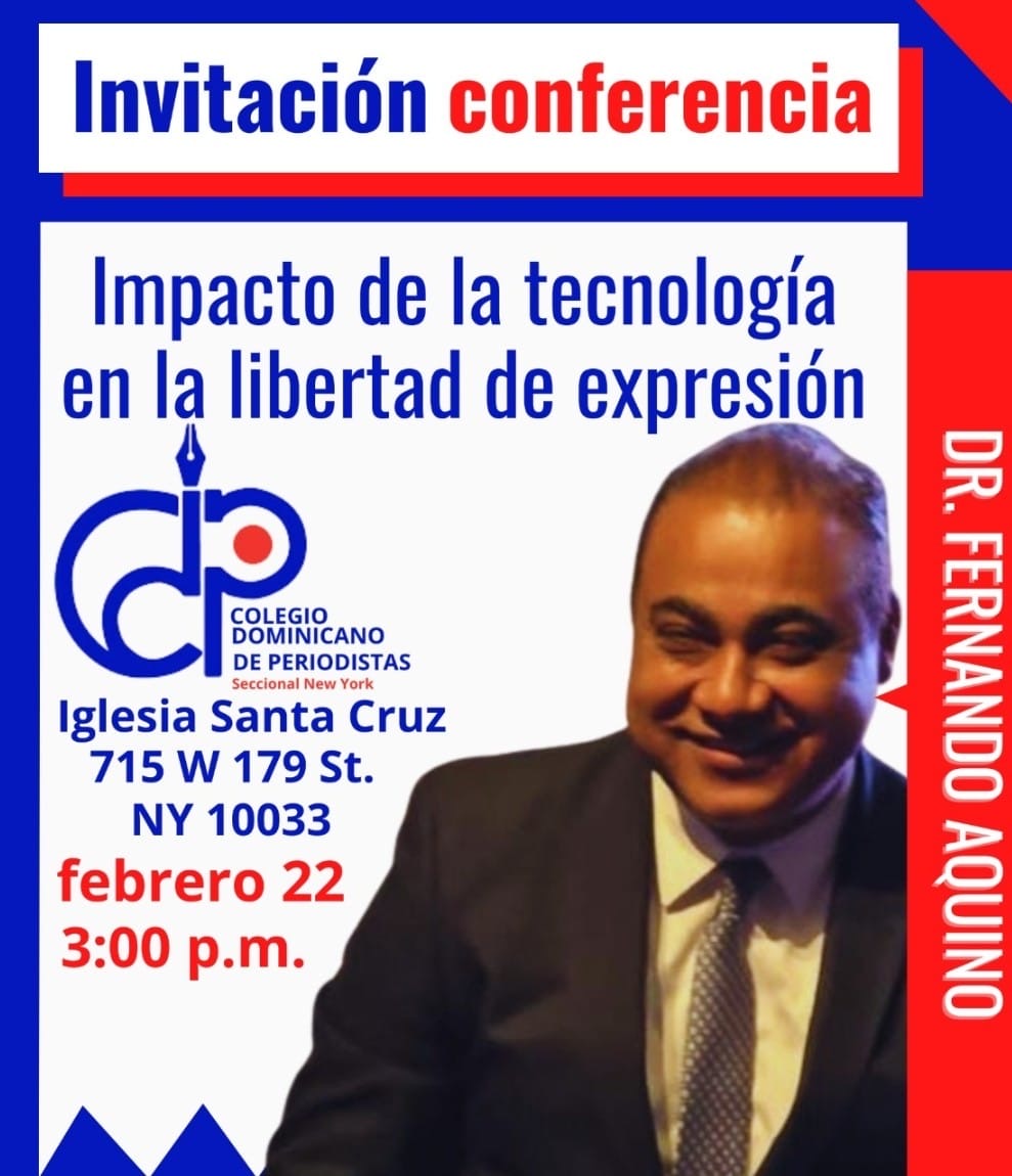 El Colegio Dominicano de Periodistas, Seccional New York, tiene el placer de invitar a todos sus miembros, amigos, dirigentes comunitarios y diferentes medios, a la interesante conferencia Impacto de la Tecnología en la Libertad de Expresión.